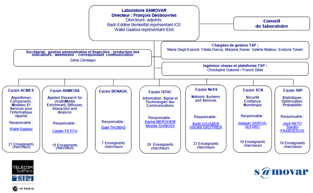 - Badr-Eddine BENKELFAT est Directeur adjoint du laboratoire Samovar. Il peut notamment représenter le Directeur de Samovar dans toute instance liée au département ICE de l’IP Paris.